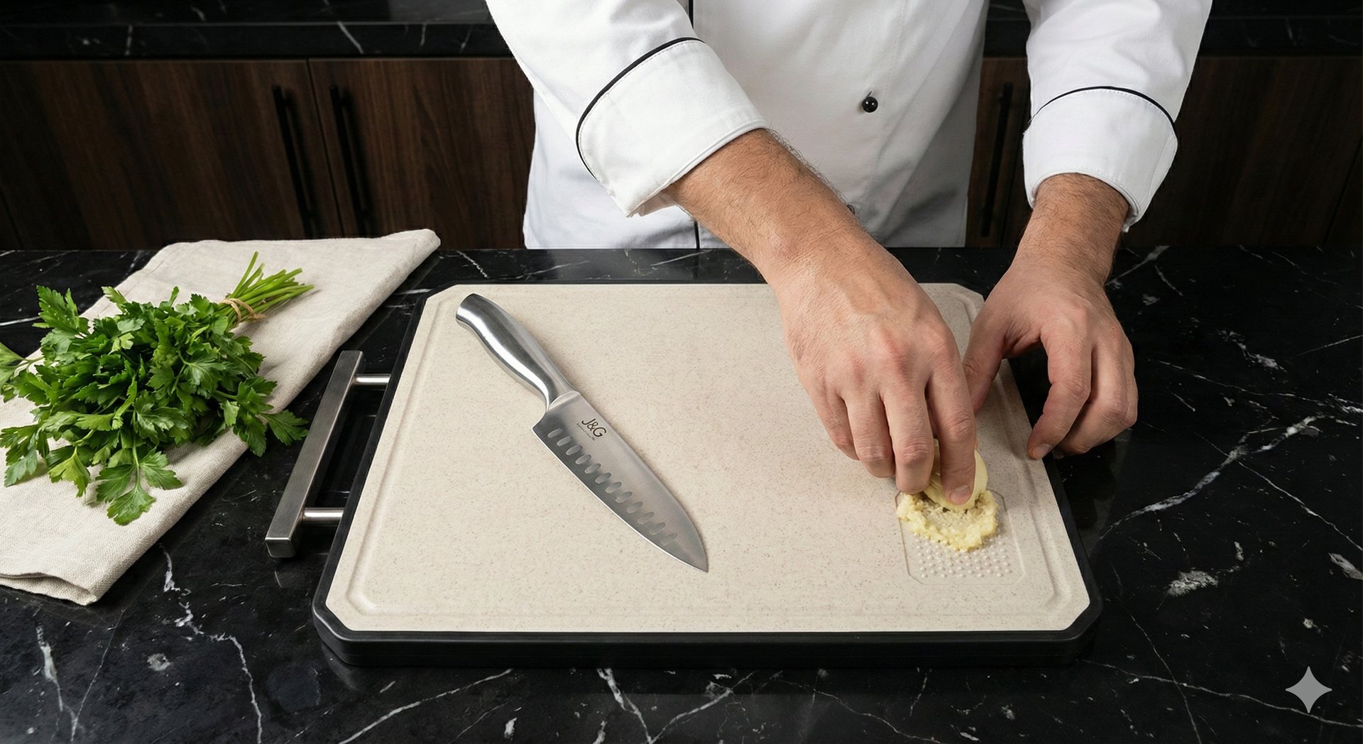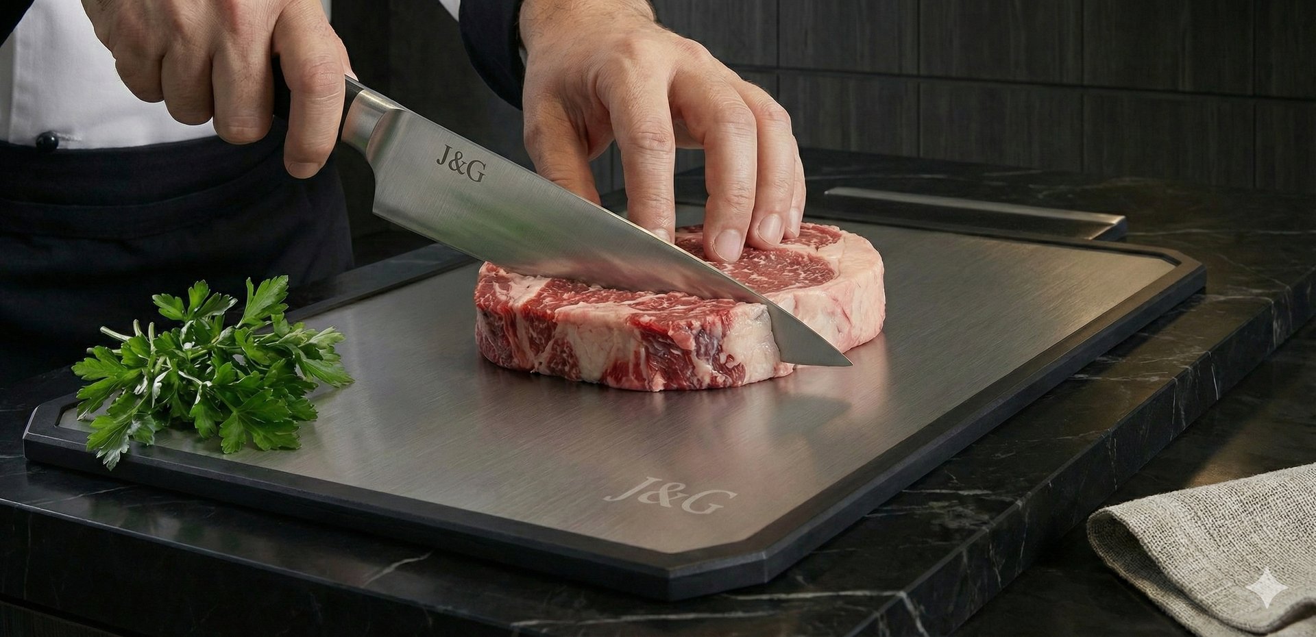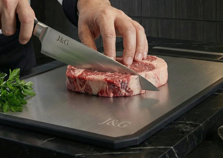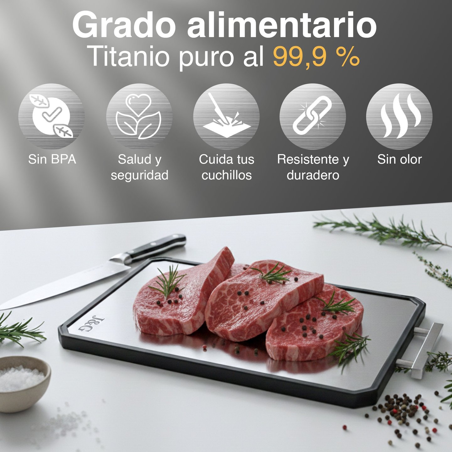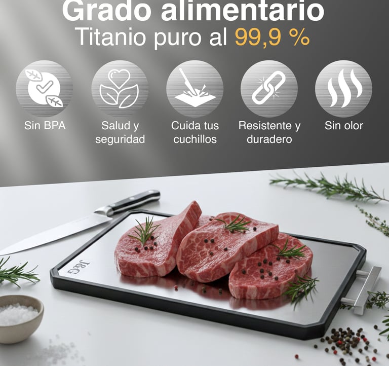 En J&G utilizamos titanio de alta pureza para crear una superficie de corte más higiénica, resistente y duradera que los materiales tradicionales.